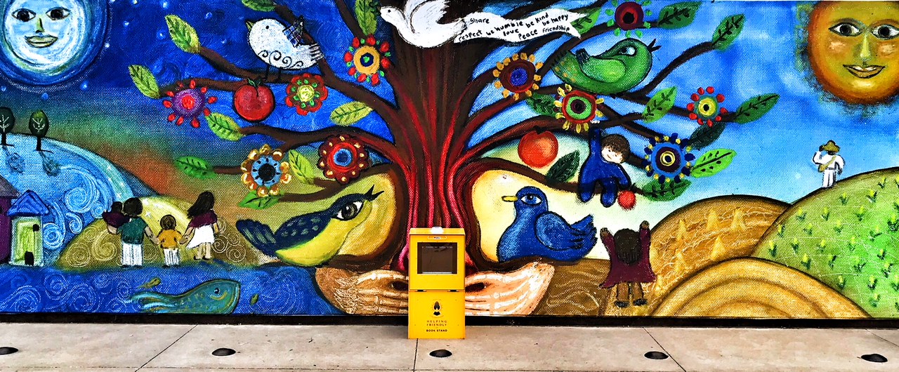 The purpose of ‘Helping Friendly Book Stands’ is to ignite the imagination and illuminate the curiosity of anyone that engages with it. They are mental pollination stations. When people read, their imaginations become enriched, their conversations and relationships become enriched, and their communities and neighborhoods become enriched in a beautiful ripple effect. Everything is connected. Reading, and socially supported reading in particular, elevates social vitality as it builds conscious, connected community in the process. As above, so below. As within, so without.
